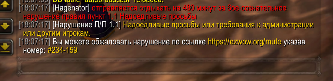 - При повторном нарушении одного и того же правила в течение последних 7 дней действует накопительная система - за каждое последующее нарушение срок базового наказания увеличивается в 2 раза (исключая предупреждение, оно нарушением не считается);