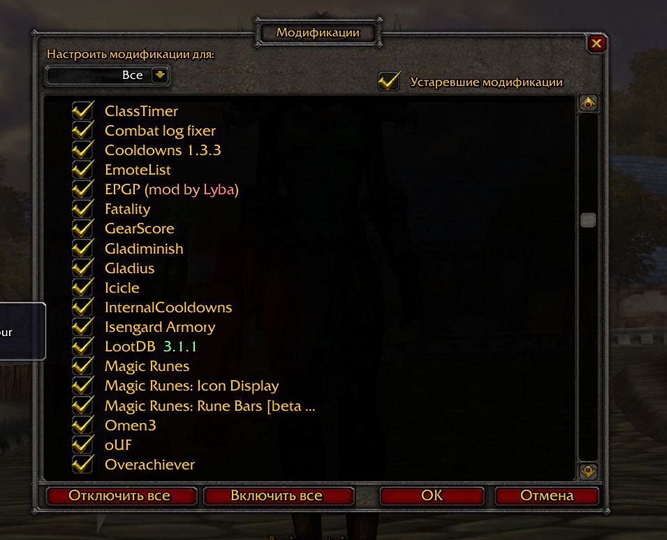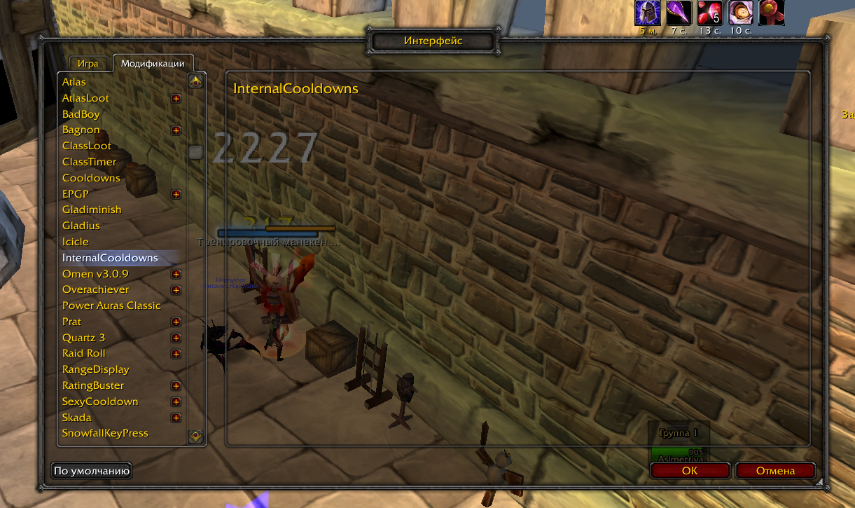 Столкнулся с проблемой аддона InternalCooldowns. После обновления винды(сменил на 10) и покупкой нового ссд, аддон перестал работать(в настройках меню персонажа отображается, в самой игре где зеленый монитор пишет что занимает память, но в интерфейсе в модификациях нету)