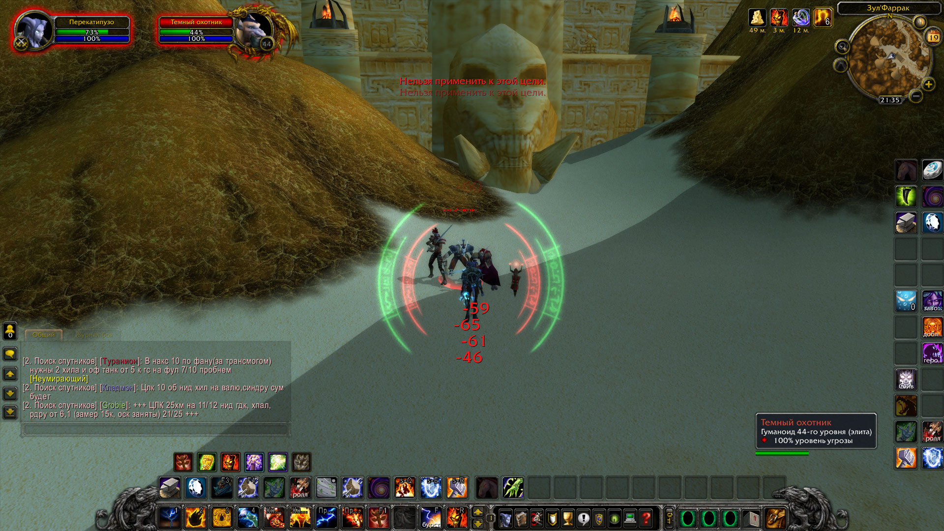 Пошел в ЗулФарак ткань магическую пофармить, а там какая-то ерунда случается: то полутать моба нельзя(без надписей), то атаковать враждебного(нельзя применить к этой цели). Забавно, что если альттабнуться, то это временно проходит.