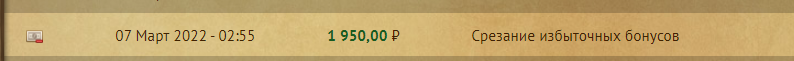 07 Март 2022 - 02:55 535,00 ₽ Срезание избыточных бонусов