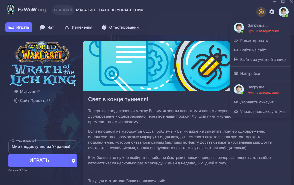 Добрый день! Не авторизовывается в лаунчере, чат пустой, но в клиенте видимо кеш еще живой, авторизация проходит.