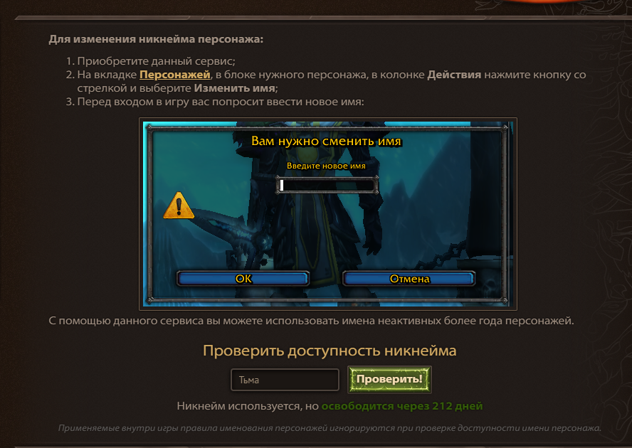 почему нельзя создать персонажа с ником Тьма,? Оружейная не показывает, что вообще есть такой персонаж