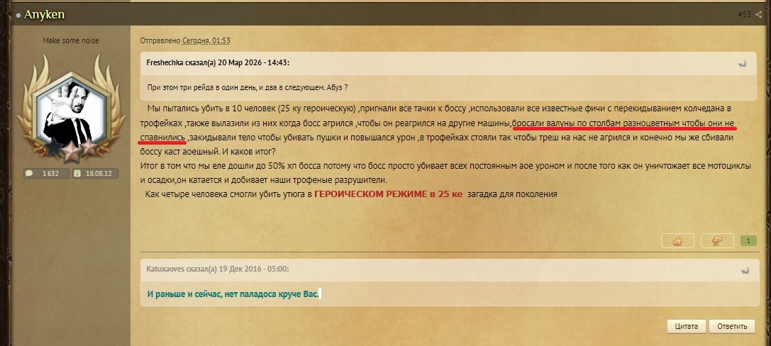 Так же пытались убить босса и некоторые "уникумы" возмущающиеся в теме. Даже используя ещё больше эксплойтов и недоработок чем мы, делая только хуже себе.