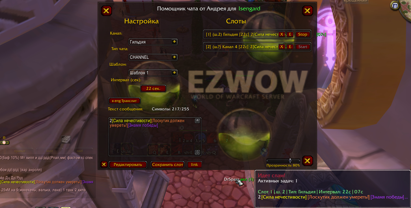 Как ею пользоваться разберётесь в игре, распаковать и закинуть папку DrSpammer в папку \Interface\AddOns\