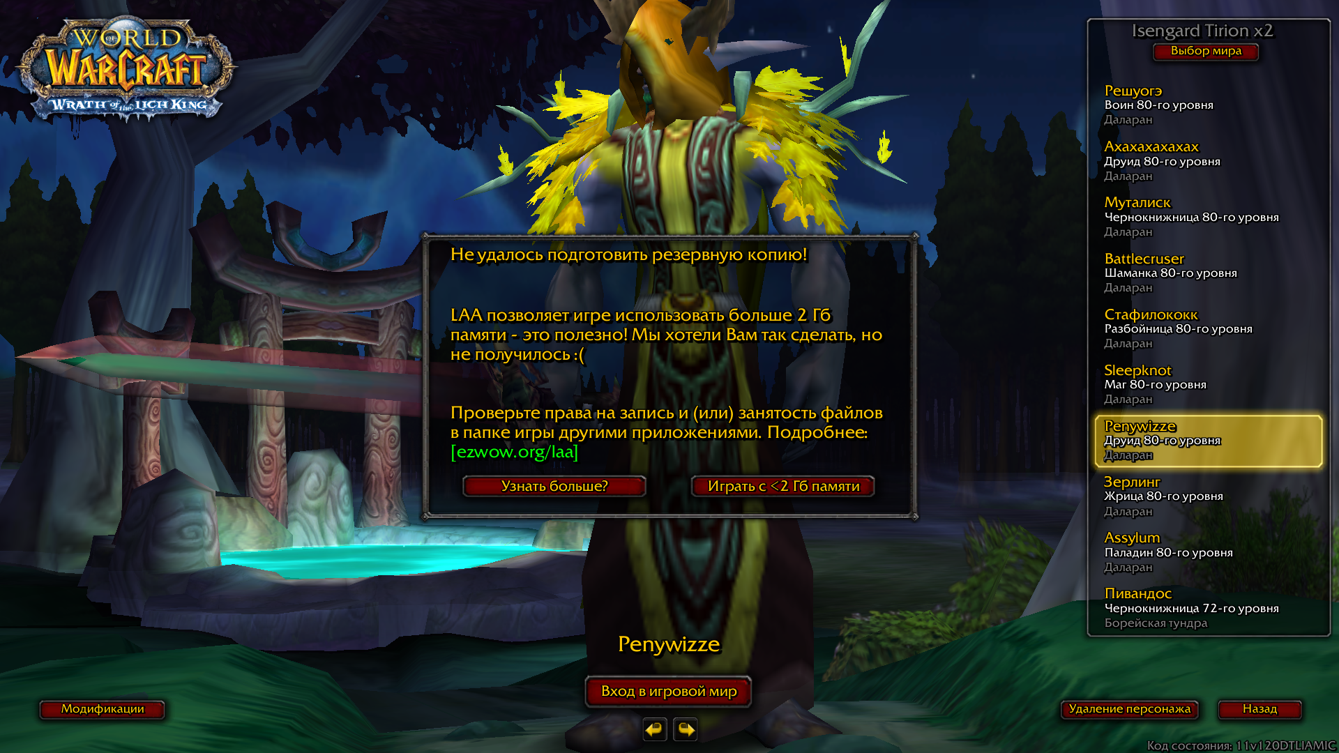 вов не видит память и выдает вот эту ошибку каждый раз при заходе, при переходе по ссылке ничего не происходит, а игра вылетает в даларане и приходится играть на минималках. кто нибудь знает как это фиксить?