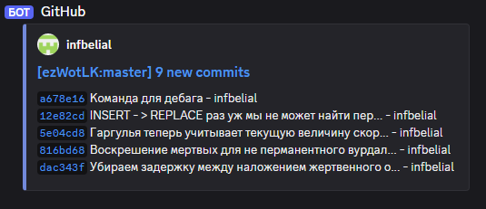 Имеем что имеем - обновления в Дискорде через вебхук. Но там информация срезается и сиди гадай что обновлено. А хочется оперативной обратной связи, чтобы не ждать месяцами списка обновлений.