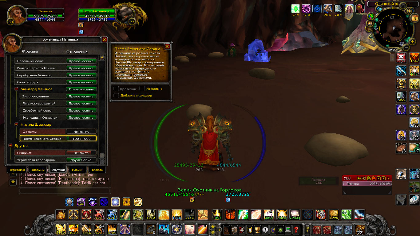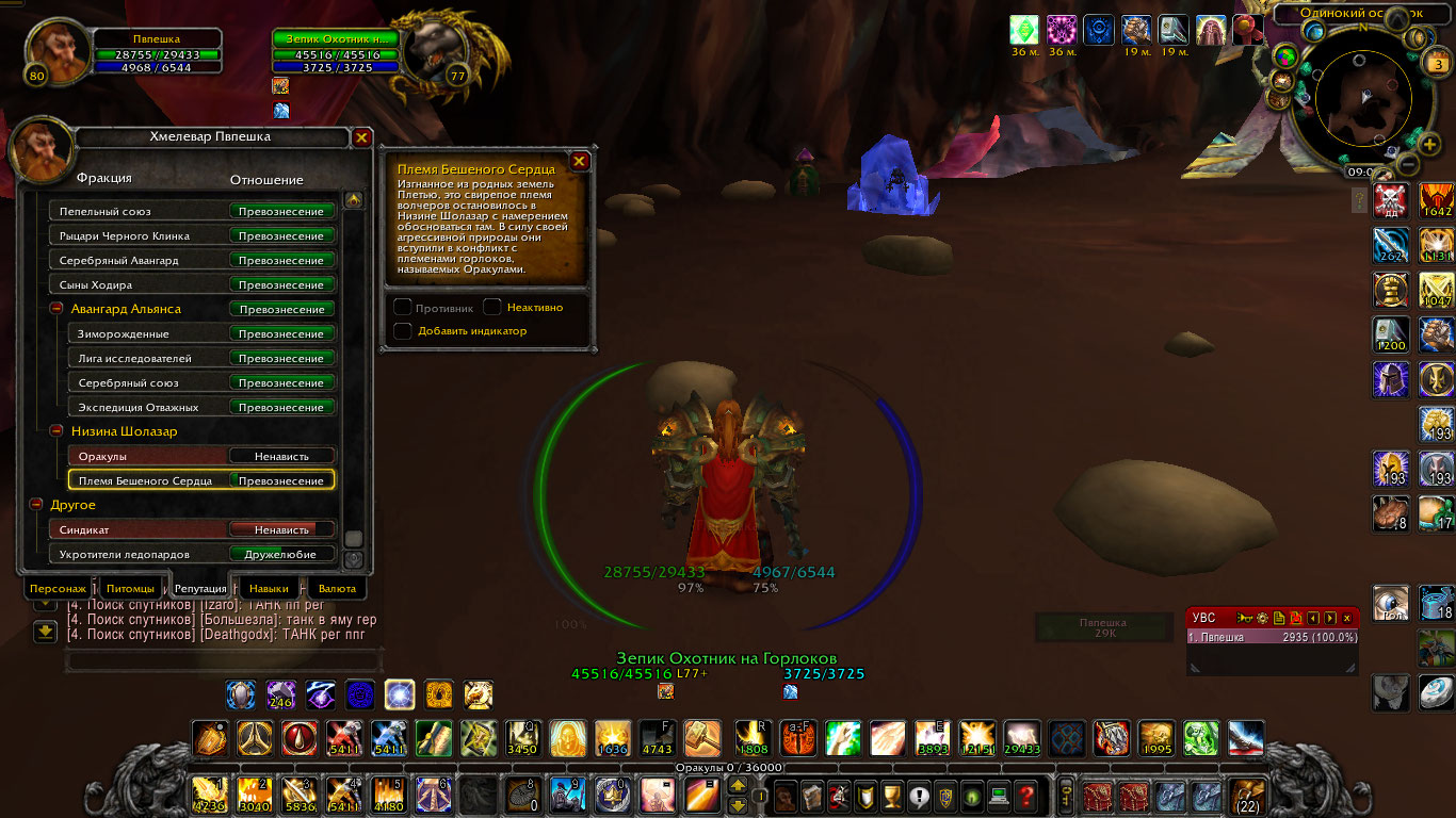 Прокачал до превознесения репутацию с племенем бешеного сердца. Сделал все квесты и дейлики. После получения превознесения помог по квесту полудохлому Оракулу рядом с Холмом бешеного сердца и довел его до дома. Сдать квест не выходит так как Оракулы злобные. Пошел в пещеру к личу, но выбрать сторону не выходит. Начинаю бить моба, перевожу во вторую фазу и ни как. Смотрите скрины. Может просто глюк и нужно ждать падения серва или я не так делаю?