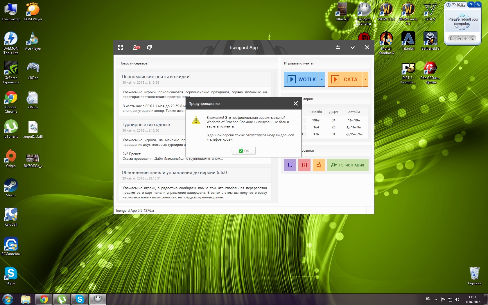 Значит столкнулся с такой проблемой: на старый клиент скачал новые модельки с ВоД, они через ИзиАпп поставилось, все круто и отлично, НО! Но начались постоянные краши, подвисания, беспридел одним словом. Ну я в печале был и удалил сей клиент, как Герасим МуМу утопил... ех... Поставил на закачку новый клиент через ИзиАпп, настроил, все дела. Но и тут проблема: не могу скачать модельки эти. Их тупо не качает и кидает мне предупреждения, как ПеПеэСник во дворе, когда мы с мужиками пиво пьем.