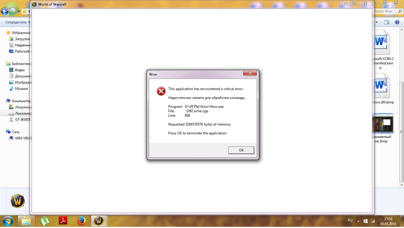 У меня есть занятие для тебя. Для начала начни учить русский язык за третий класс. А там, глядишь, и вов запустится...