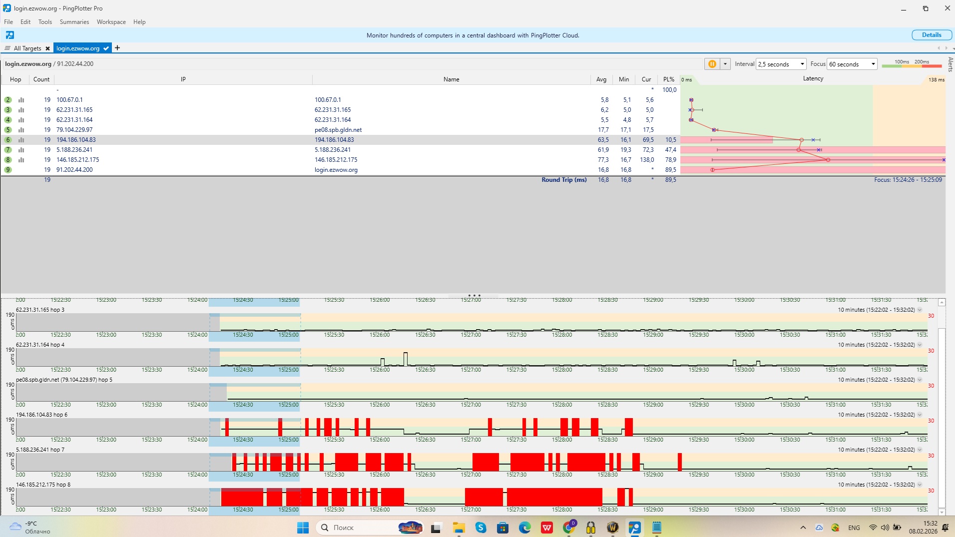 Проблемы у магистрального провайдера. Как правило, повлиять на скорость решения подобных проблем практически невозможно - в случае, если проблема будет сохраняться по истечении 3-4 дней, обратитесь, пожалуйста в данную тему повторно с предоставлением новой трассировки в момент потери связи.
