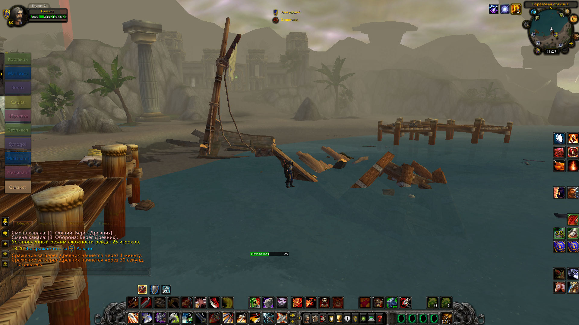 Пришло приглашение на Берег Древних и телепортировала в воздух к причалу. Двигаться не могу. До начала боя больше минуты. Когда бой начался и корабль приехал, двигаться так и не смог.