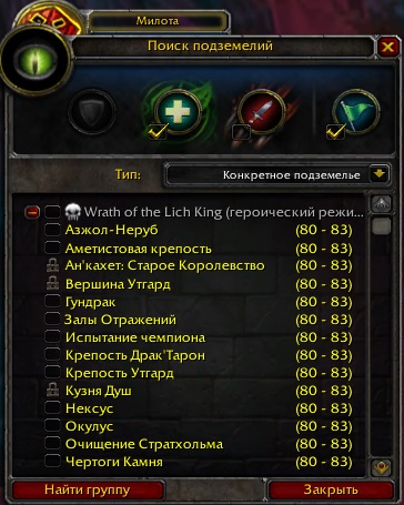 (только актуальные рейдовые подземелья - ЦЛК, РС и ИВК)